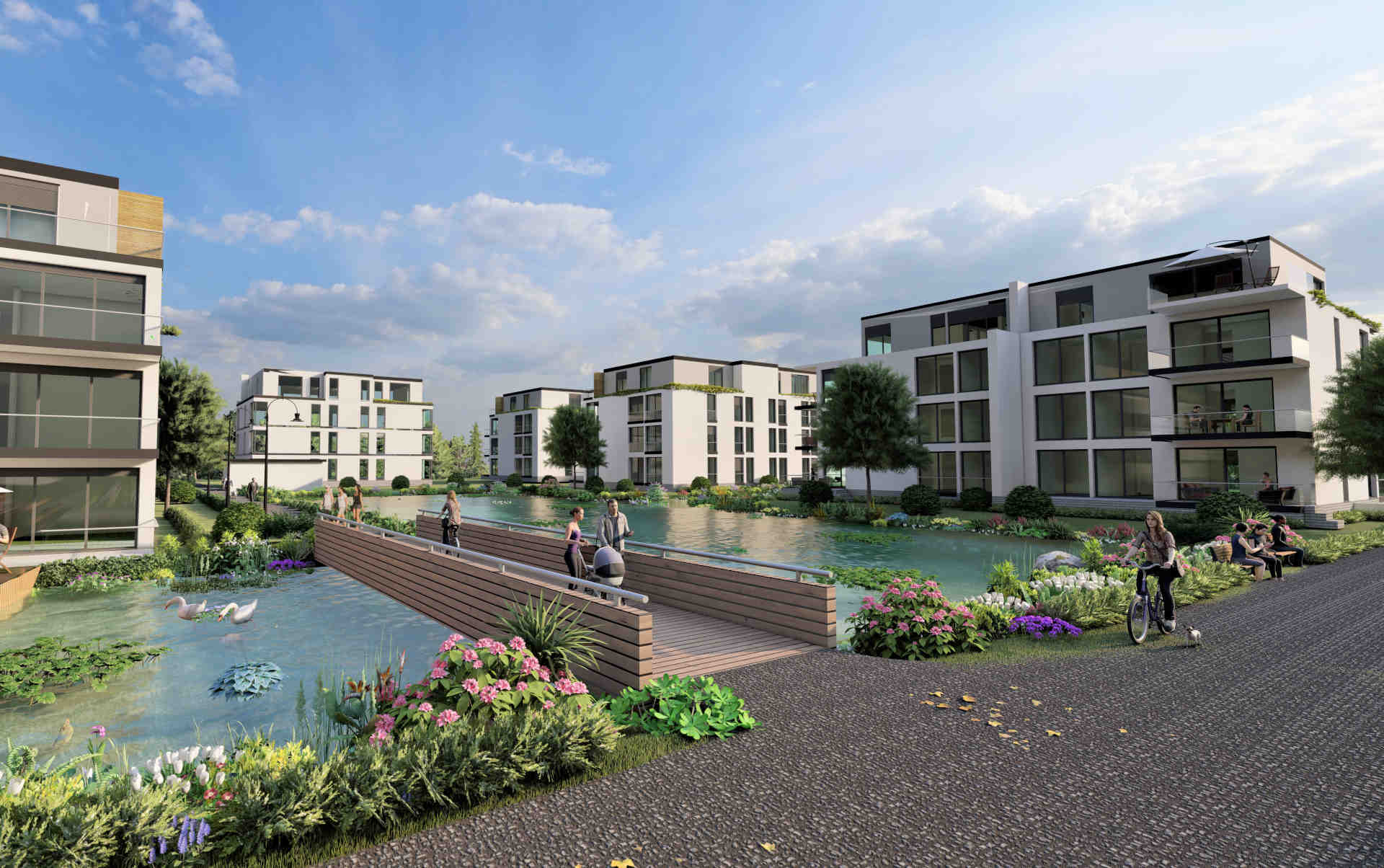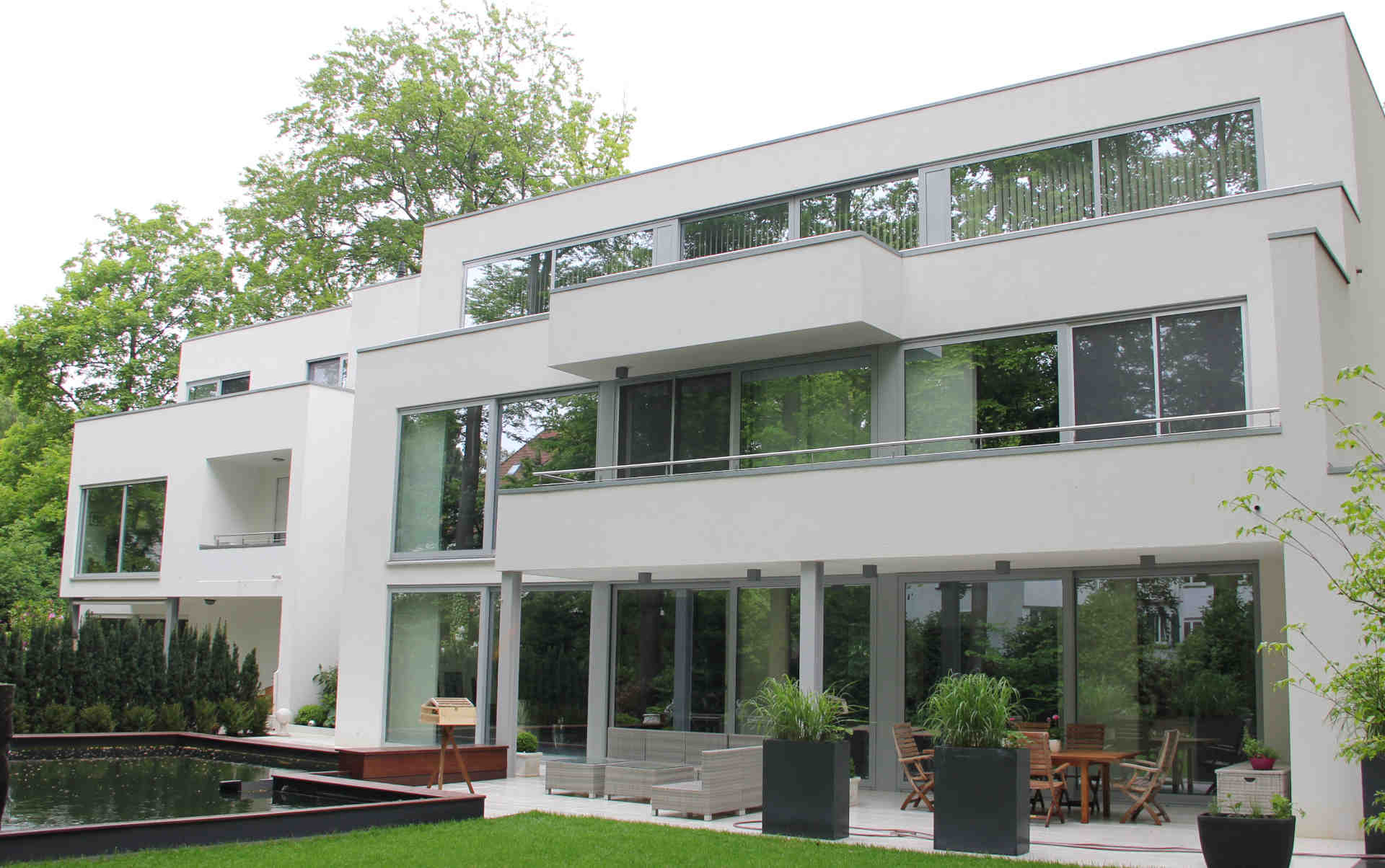 Neubau einer exklusiven Stadtvilla mit 3 Einliegerwohnungen, Altenteil, Schwimmbad und einer Teichanlage